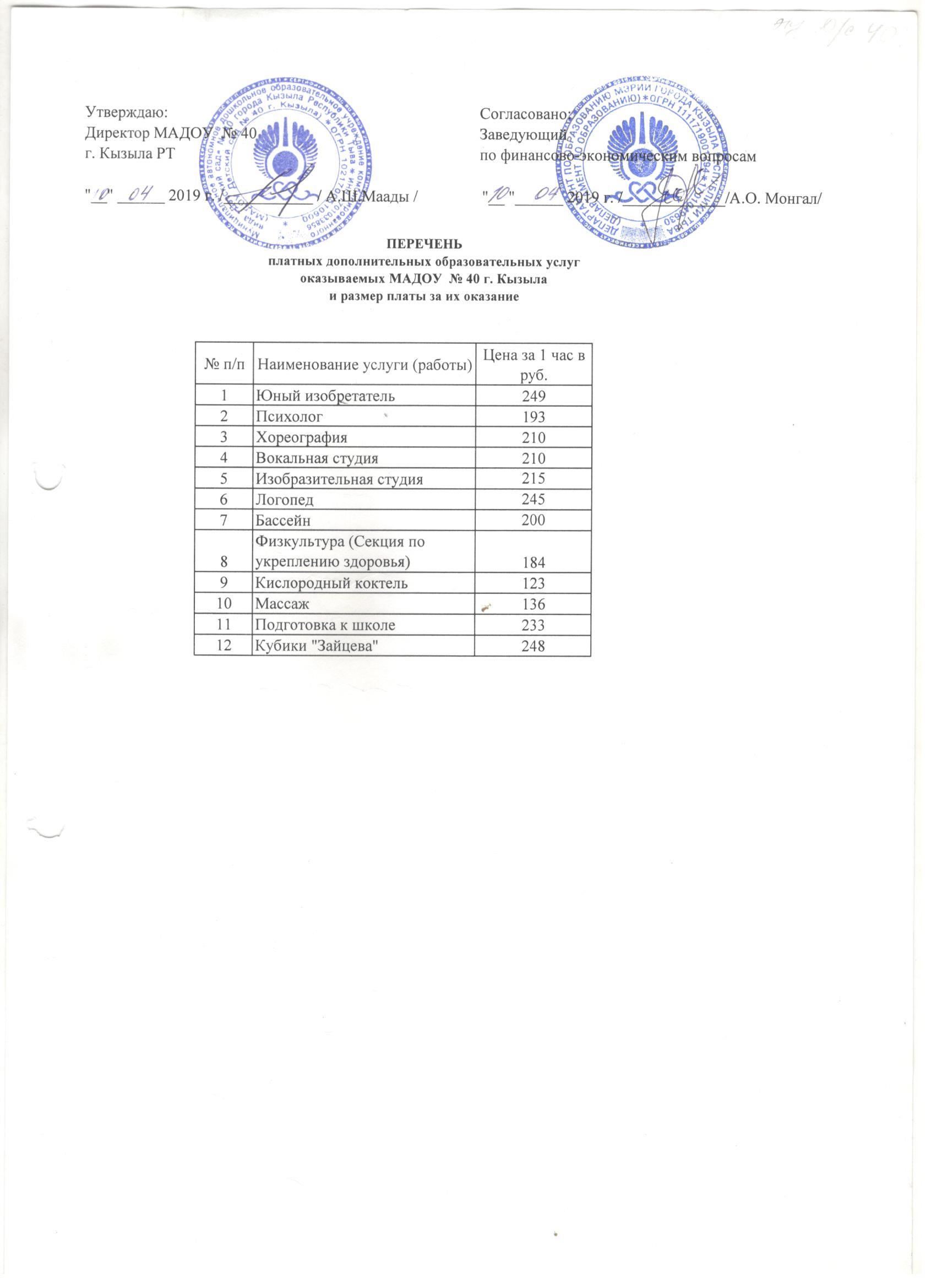 Положение об оказании дополнительных платных образовательных и оздоровительных услуг в МАДОУ Детский сад № 40 г. Кызыла Скачать